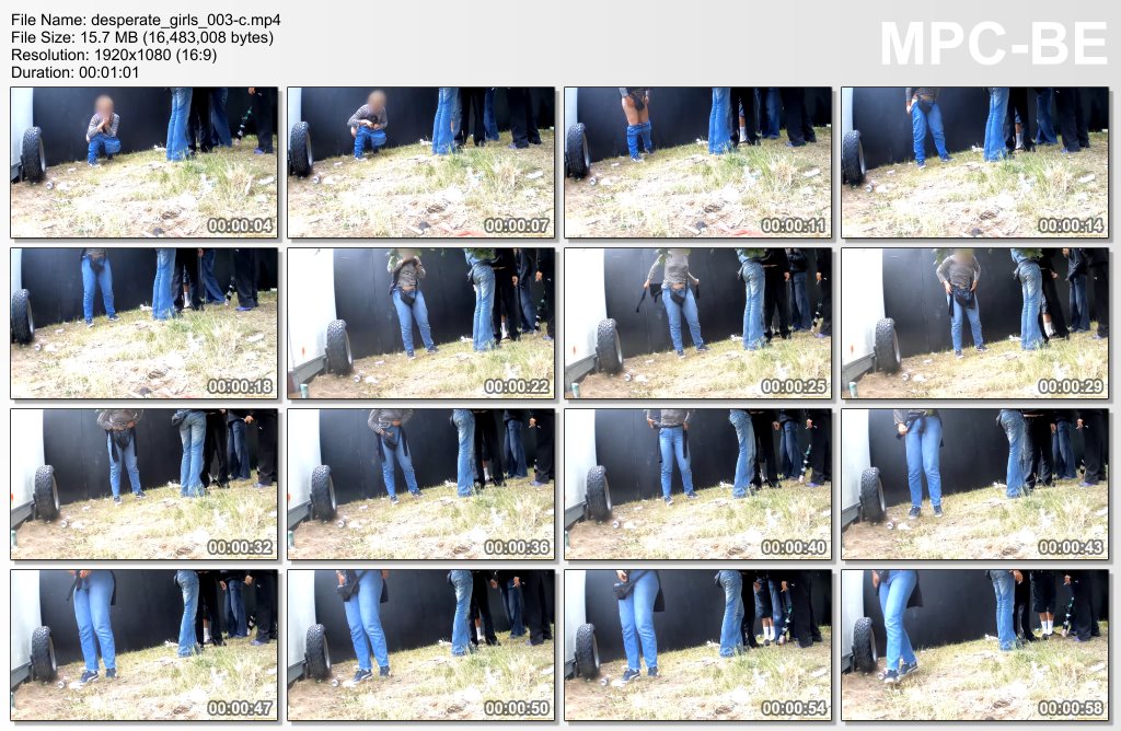 Voyeur clip of just the aftermath - a woman peeing and pulling her panties and jeans back up, with an obvious wet spot between her legs. Video description said she was seen running to the spot while holding her crotch, but we sadly just missed it