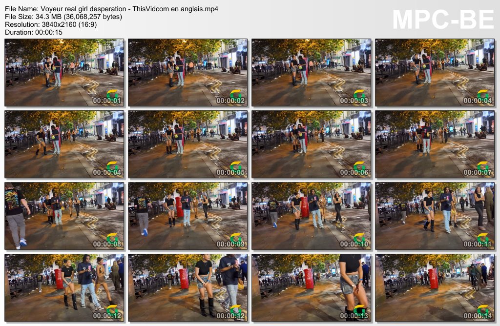 Short clip of a young black couple out on the town at night, and the girl has both her hands holding her crotch under her denim skirt.